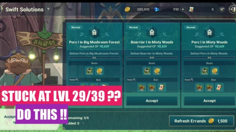 We also recommend you refresh errands and try to check for premium or rare quests as they give your more exp points, so always go for them. Swift solutions take only 2-3 minutes of your time but can reward you up to 500k exp points if you are lucky.